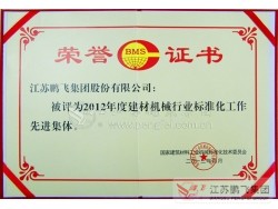 中國建材機械工業(yè)協(xié)會授予江蘇鵬飛集團股份有限公司為中國水泥機械龍頭企業(yè)!
