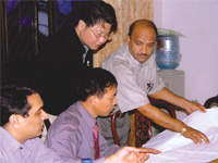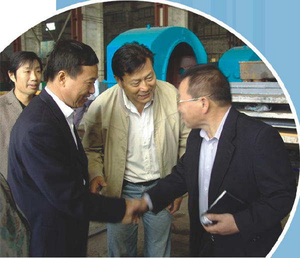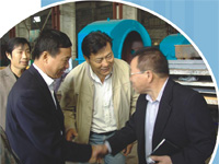 | 公司董事長總經(jīng)理王家安(左四)率專家組對(duì)MD三A水... |