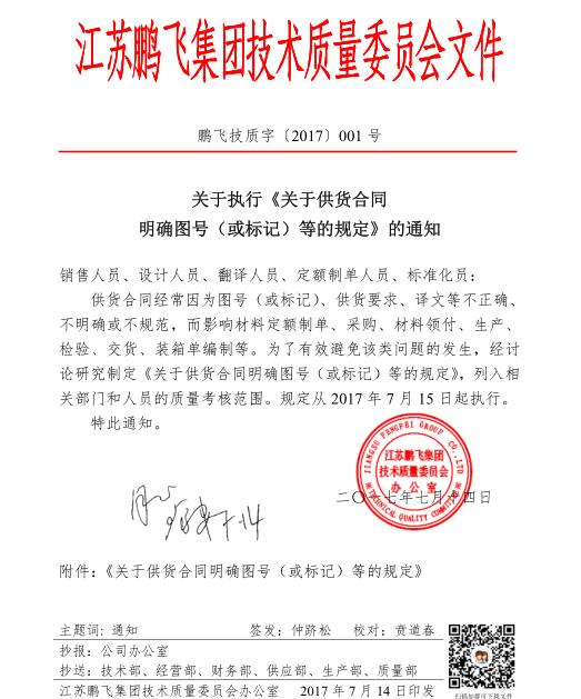 本規(guī)定由江蘇鵬飛集團(tuán)技術(shù)質(zhì)量委員會(huì)歸口。