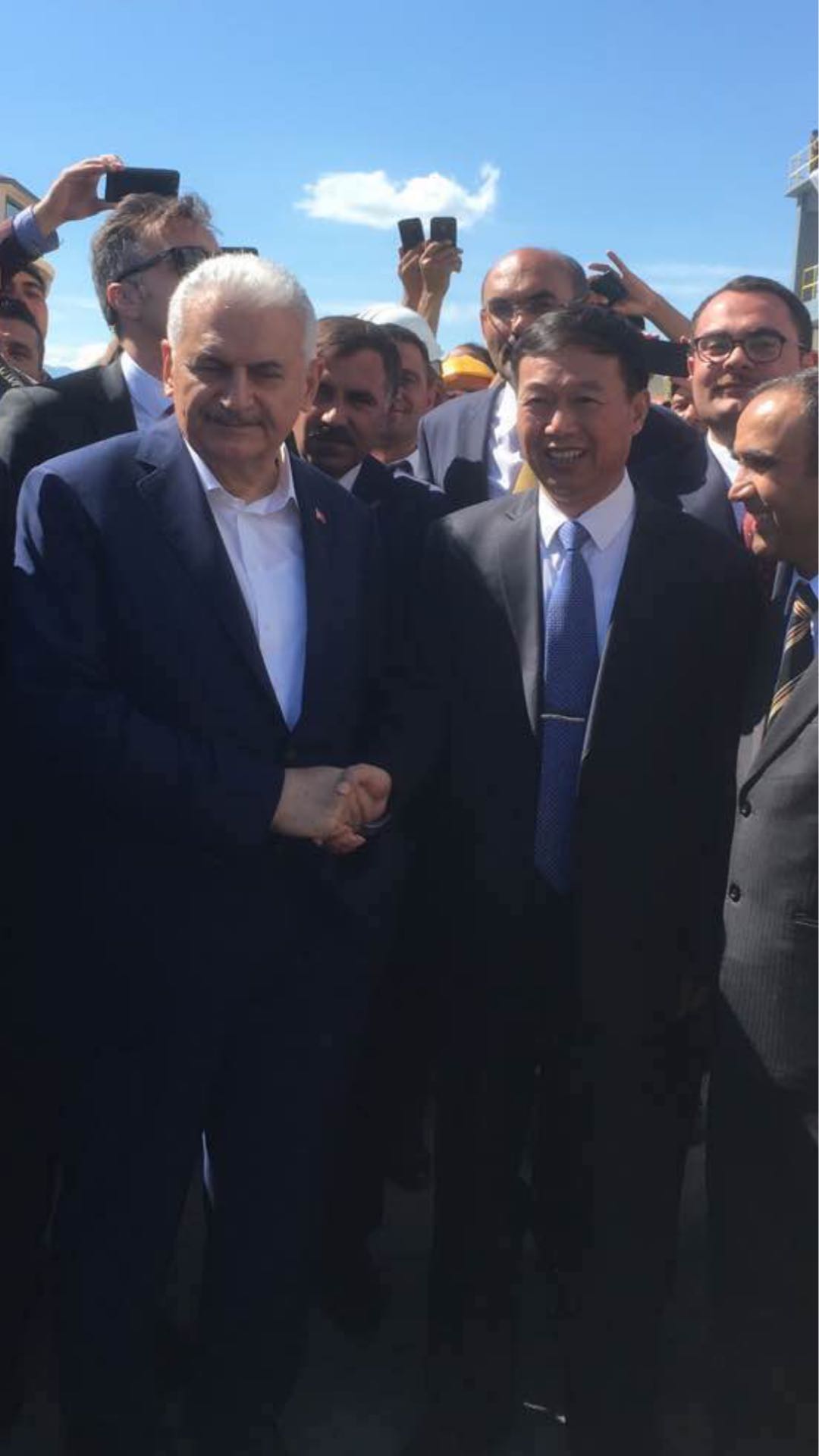 江蘇鵬飛集團股份有限公司董事長王家安先生親赴現(xiàn)場參加慶典活動,受到土耳其總理耶爾德勒姆的會見,并和業(yè)主高層一起參加投產(chǎn)儀式!