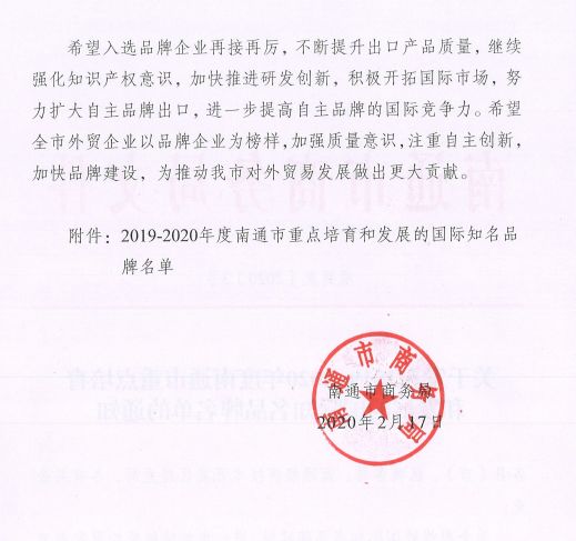 近年來,海安市商務局高度重視外貿(mào)企業(yè)自主創(chuàng)新、培育自主品牌、提升出口產(chǎn)品質(zhì)量。在2019-2020年度南通市重點培育和發(fā)展的國際知名品牌評比工作中,市商務局外貿(mào)科積極組織、科學指導全市重點外貿(mào)企業(yè)按要求申報,最終我市江蘇鵬飛集團股份有限公司等8家企業(yè)成功入選,企業(yè)數(shù)同比增長33%,進一步推動我市外貿(mào)企業(yè)高質(zhì)量發(fā)展。 (本文關鍵詞:江蘇鵬飛集團電話,江蘇鵬飛集團聯(lián)系人)