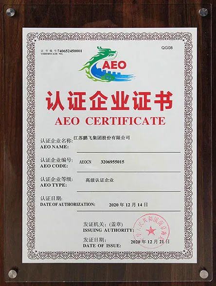 喜事二、江蘇鵬飛集團(tuán)股份有限公司通過(guò)海關(guān)高級(jí)認(rèn)證。