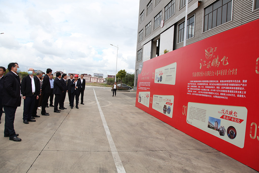 江蘇鵬飛集團黨委書記、董事長王家安陪同參觀并介紹了公司的項目實施情況。公司是國家重點高新技術(shù)企業(yè)、制造業(yè)單項冠軍示范企業(yè)、國家知識產(chǎn)權(quán)示范企業(yè)、江蘇省隱形冠軍企業(yè)。