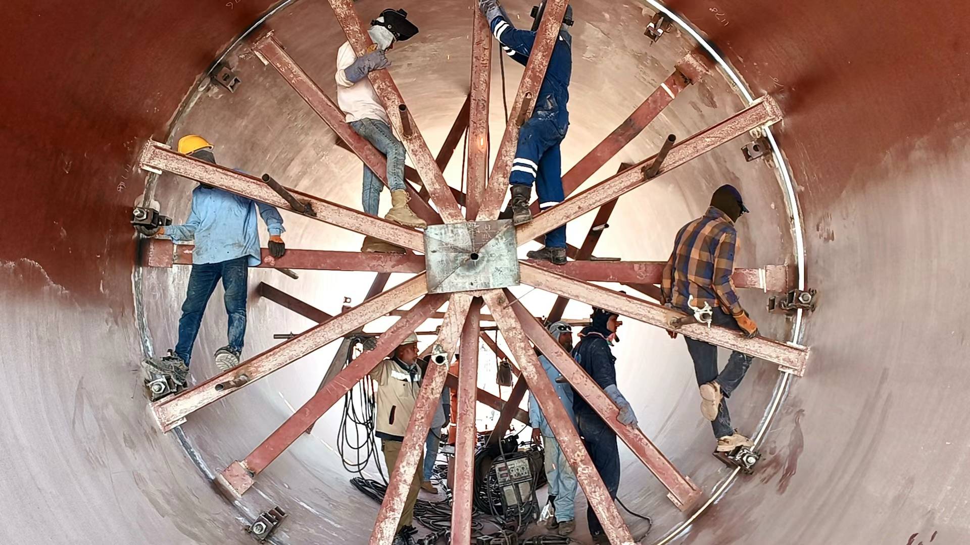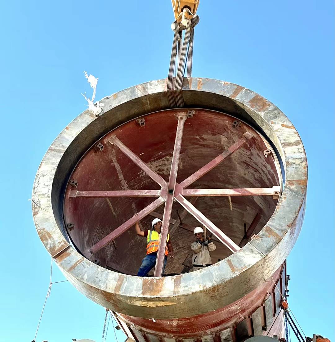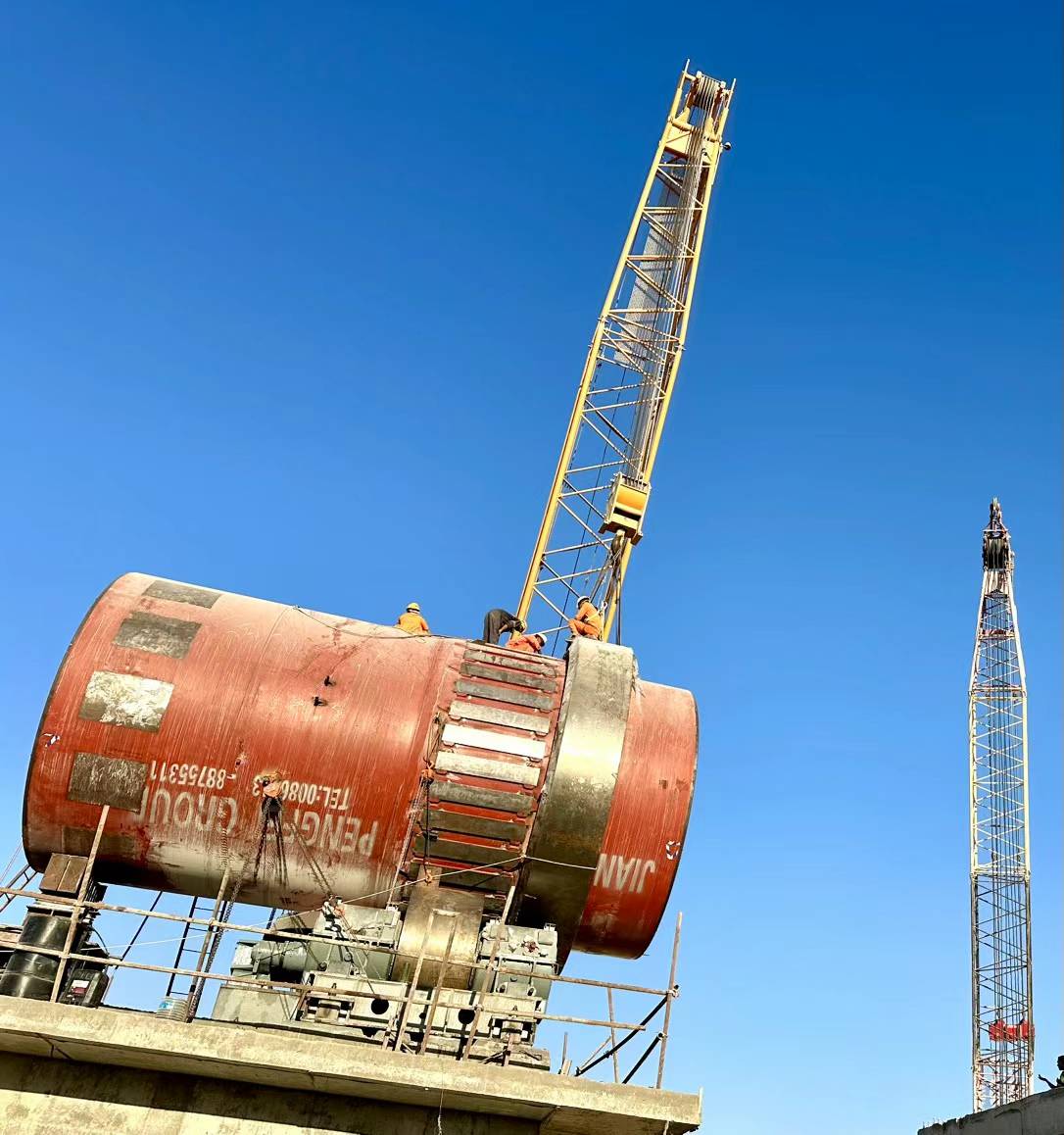 2、埃及氧化鋅項(xiàng)目回轉(zhuǎn)窯順利吊裝完成。