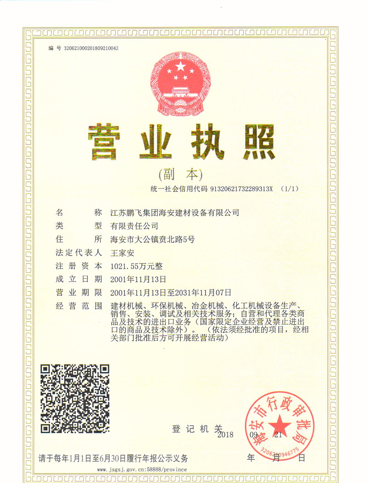 江蘇鵬飛集團海安建材 營業(yè)執(zhí)照